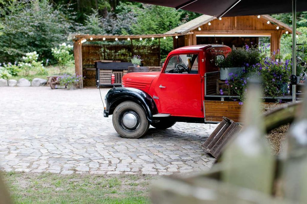 Die Mischung aus rustikaler Atmosphäre und der neu erschaffenen Moderne verleiht dem Hof dieses gewisse Etwas, nach dem Brautpaare auf der Suche nach der passenden Location für ihre Hochzeit suchen. Doch bei gutem Wetter kann auf Wunsch eine romantische Gartenhochzeit mit passenden und auf Sie individuell abgestimmten Accessoires im Freien organisiert werden.